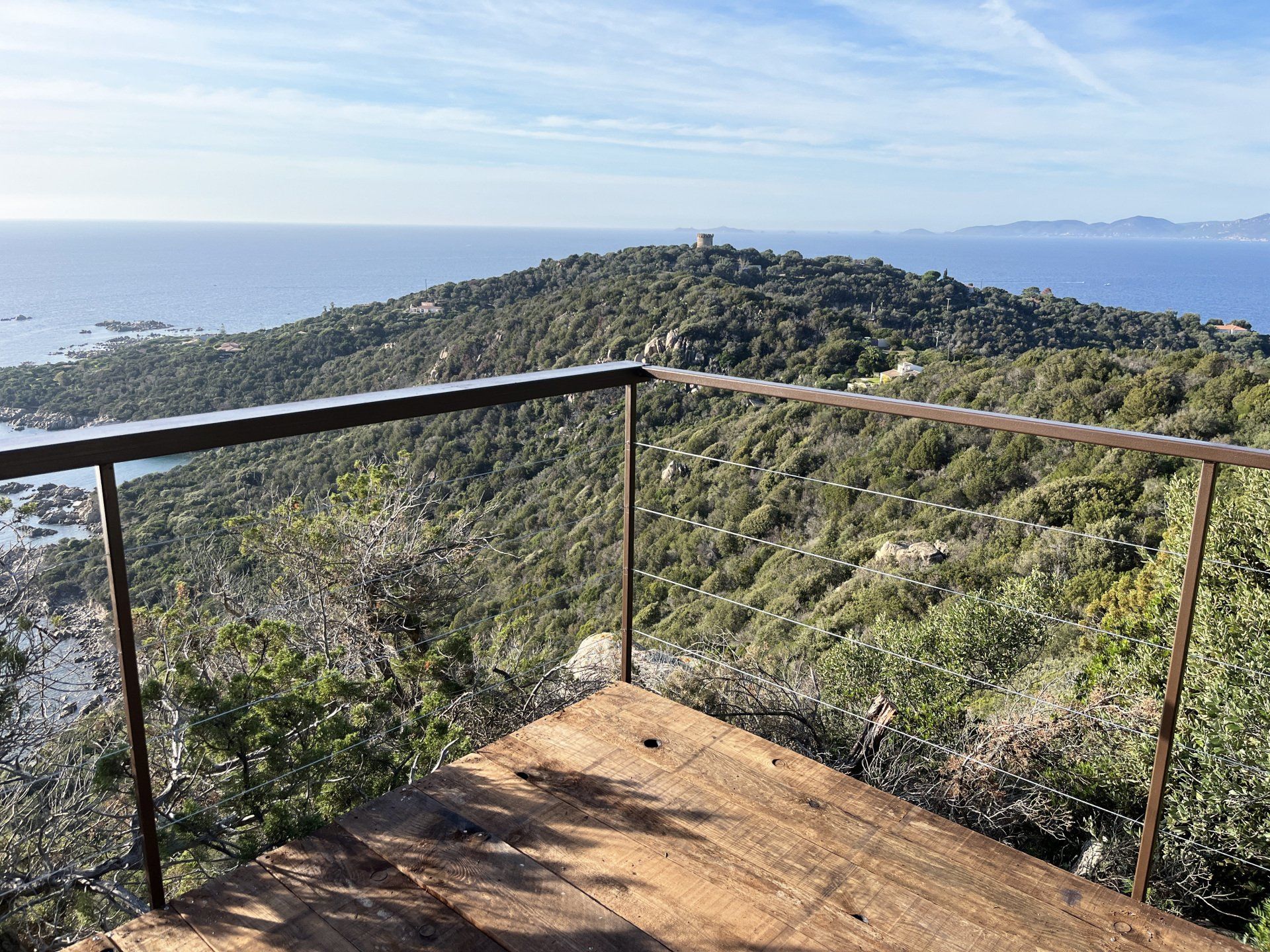 The land extends to the top of the hill with a panoramic area with a more than 180° view over the entire Gulf of Ajaccio and an overhanging terrace.