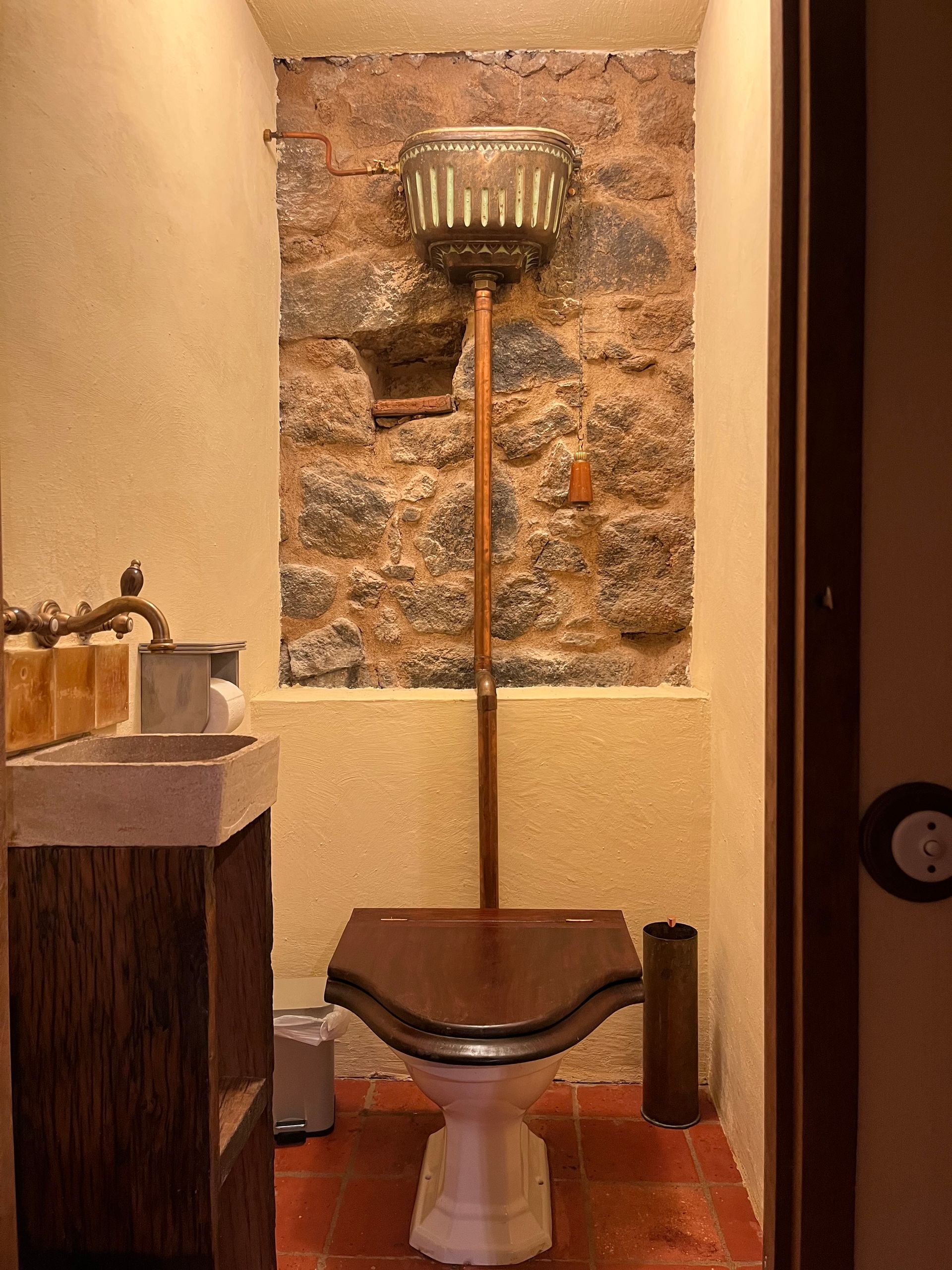 The sheepfold also has a fully equipped covered summer kitchen, an outdoor dining area under a canis arbor and an outdoor shower under an oak tree.