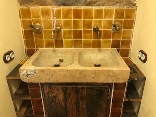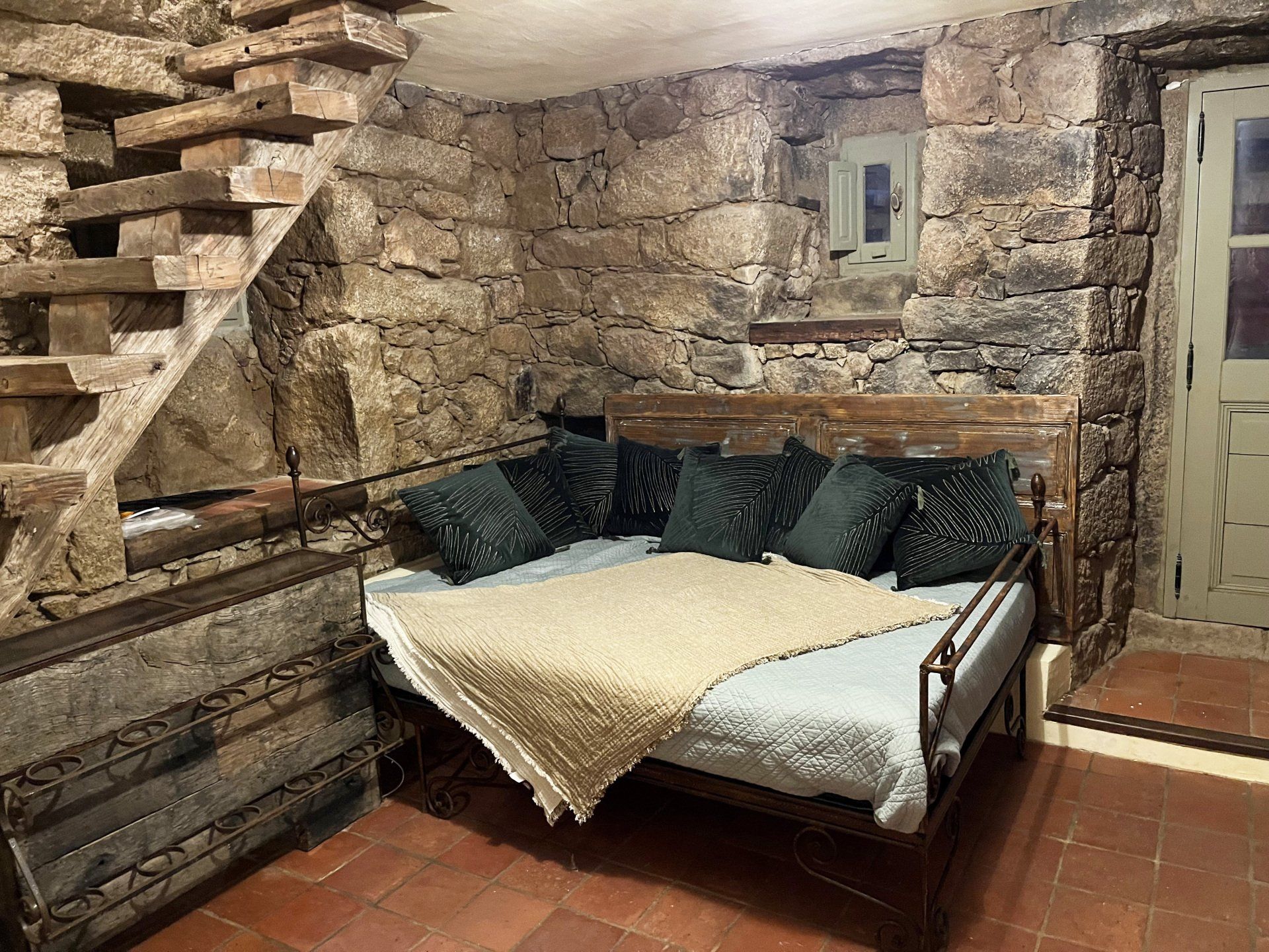 La maison principale, dite le 'caseddu' est sur deux étages et dispose au RDC une chambre de 11 m2 pour deux personnes lit double et une chambrette de 6 m2 pour deux personnes lit double, une salle de bain et WC séparé et un petit salon relajación. Accedemos a la primera planta por una escalera que da a un magistral salón-cocina de 36 m2, con una barra a modo de mueble de 2m, dos chimeneas y 5m de altura de techo. La construcción es de piedra de época y le sumergirá en un ambiente local refinado con un encanto increíble. El caseddu dispone de aire acondicionado y calefacción en invierno.